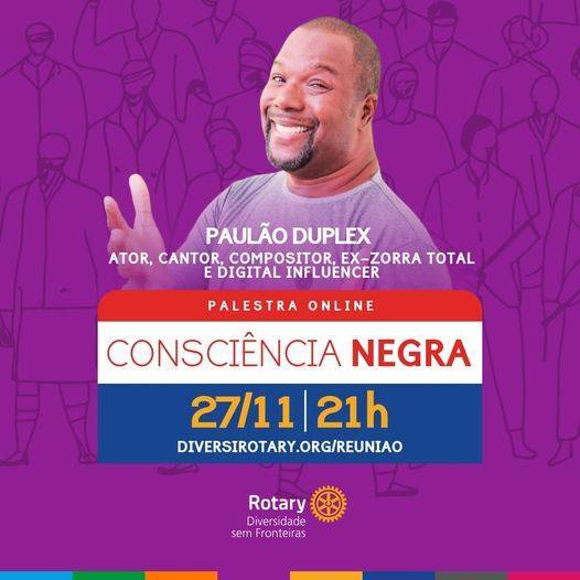 Por isso, teremos conosco no dia 27/11 Paulão Duplex, ator, humorista, cantor, compositor e digital influencer à partir das 21h, no link www.diversirotary.org/reuniao